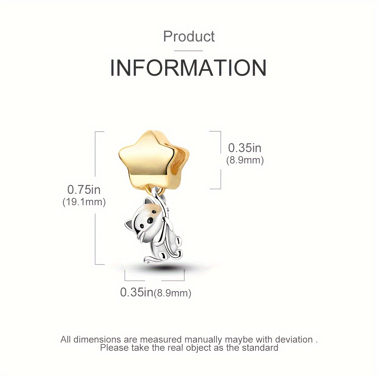 Charming Cat & Golden Star Charm - Whimsical Silver Plated Pendant for Bracelets, Earrings, or DIY Jewelry - Perfect Gift for Pet Lovers, Cat Accessories